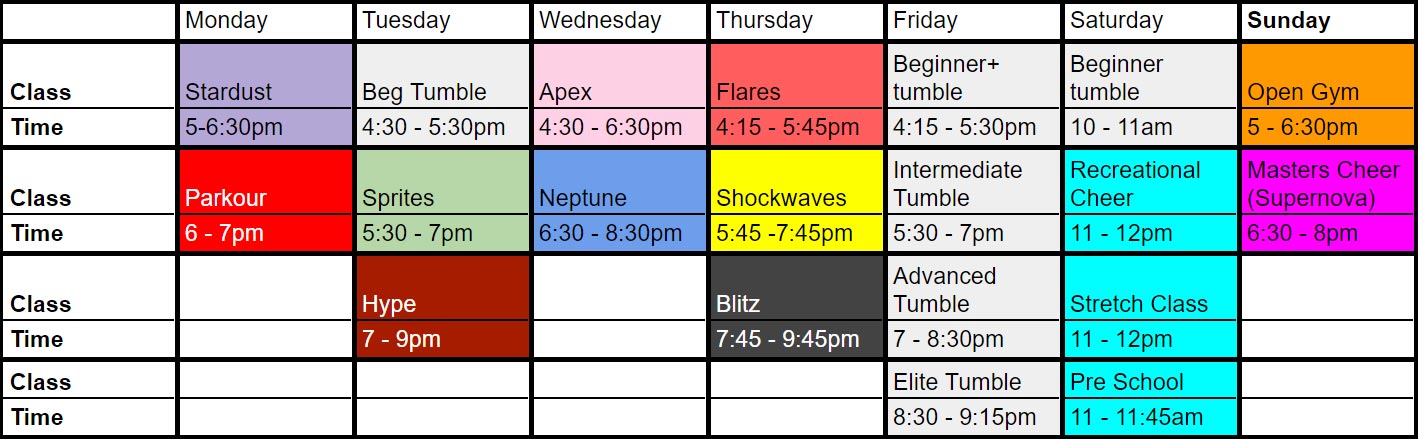 GYM TIMETABLE